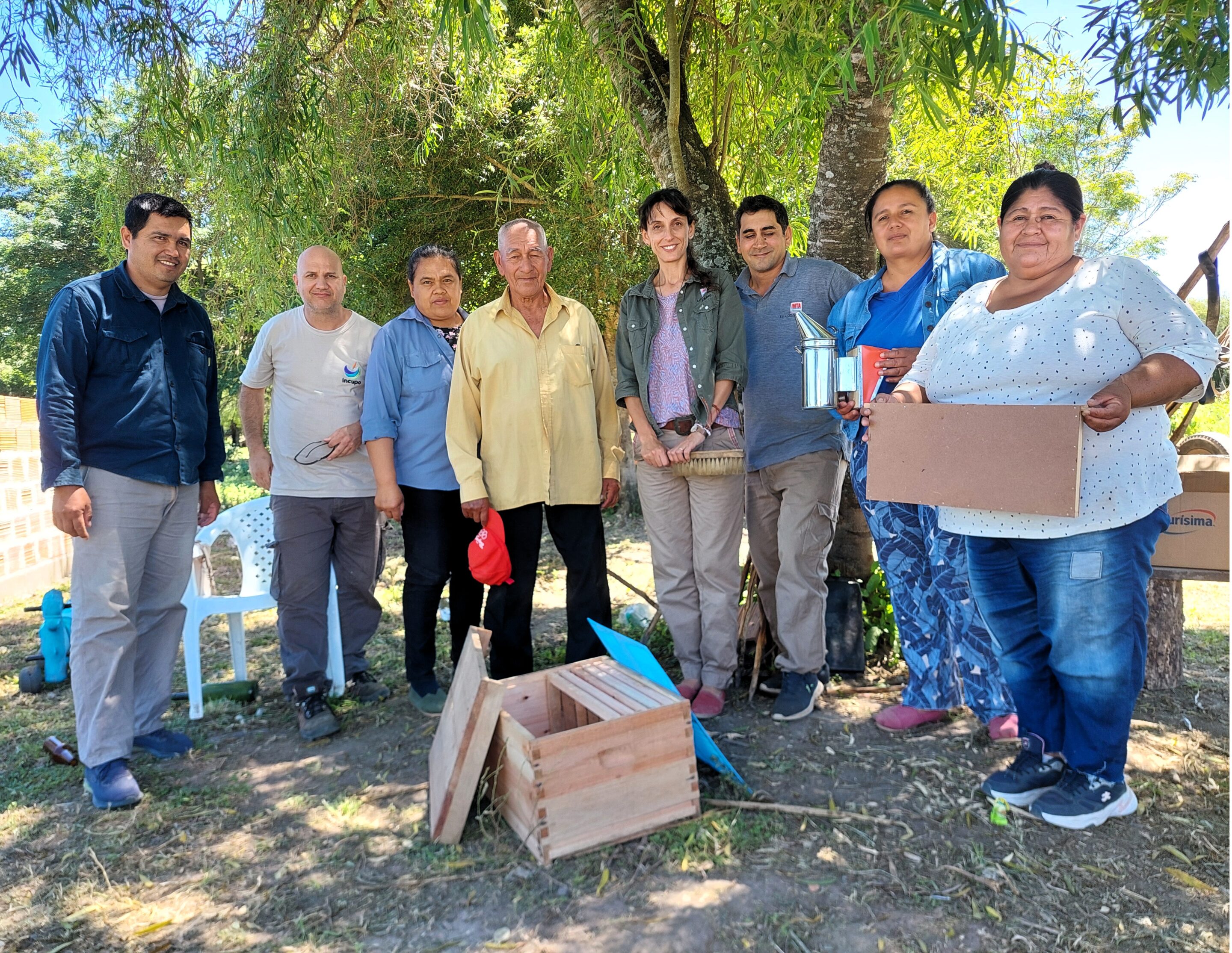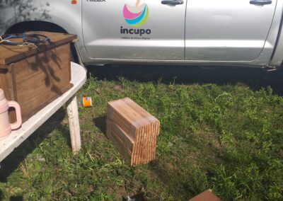 Desde INCUPO, se acompañó el emprendimiento gestionando fondos para la compra de cajones y materiales. Por su parte, la comunidad participó en la adaptación de los trajes protectores y en el armado de cajones. Junto a técnicos del INTA, este año comenzaron las capacitaciones y la instalación de colmenas en dos sectores del paraje.