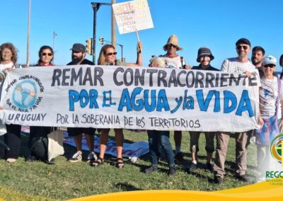 “Apoyamos la campaña continental Remar contracorriente por el agua, la vida y la soberanía”, explica Nahir Curbelo, referente de la Red en ese país. “Pero también impulsamos nuestra propia campaña en idioma Charrúa: «Ateitén hué» (somos agua), las empresas la codician, los gobiernos la entregan, los pueblos la defendemos”