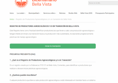 El Consejo Asesor de Agroecología de Bella Vista, conocido como Consejo de Garantía Participativa, fue creado por ordenanza municipal en 2007. Está integrado por la Cooperativa Agroecológica Las Tres Colonias, la Secretaría de Producción Municipal, el INTA, INCUPO, el INTI y el Instituto Agrotécnico de la UNNE.